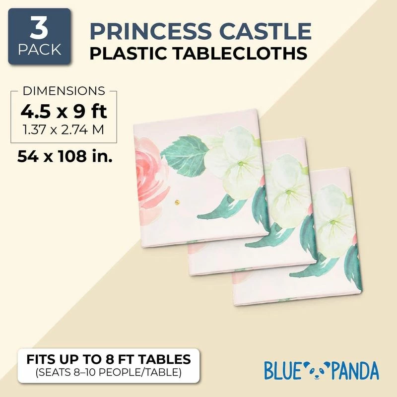 - PRINCESS PARTY SUPPLIES: Includes 3 plastic table covers; ideal for your princess birthday party! Features pastel pink flowers with gold glitter accents
