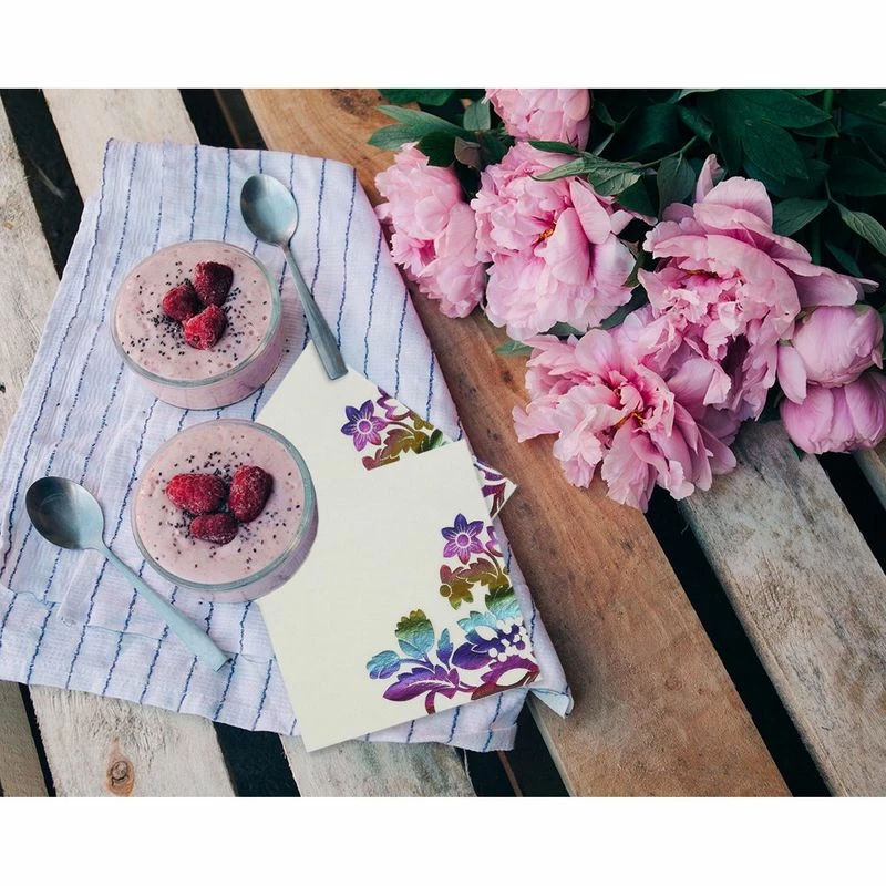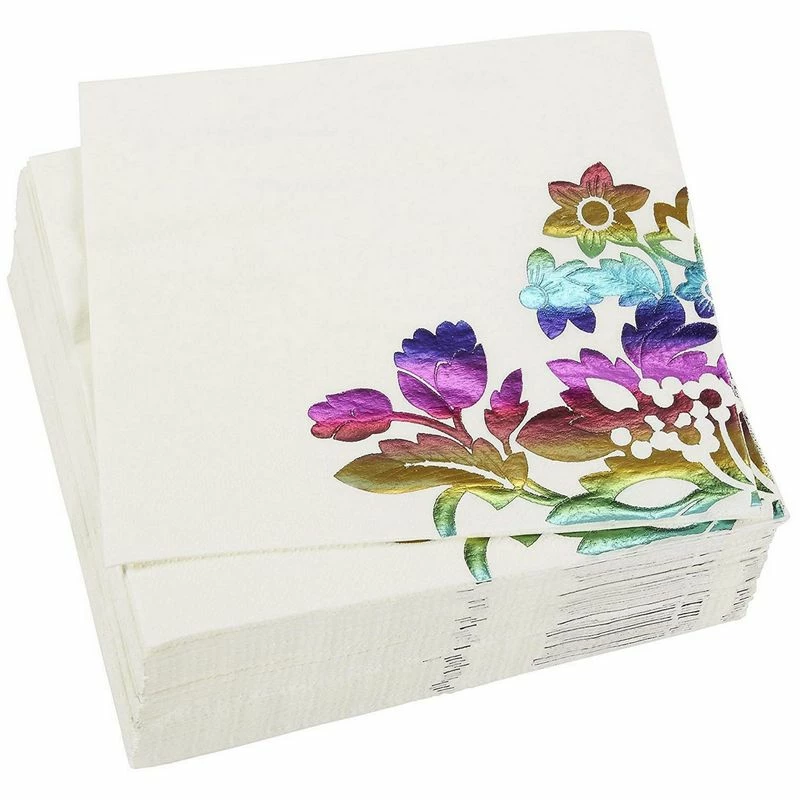 50 Pack Decorative Napkins Disposable Paper Party Napkins Watercolor Floral Designs 6 x 6 inches Folded