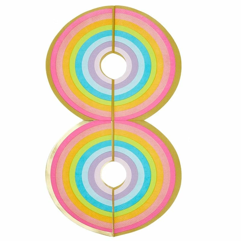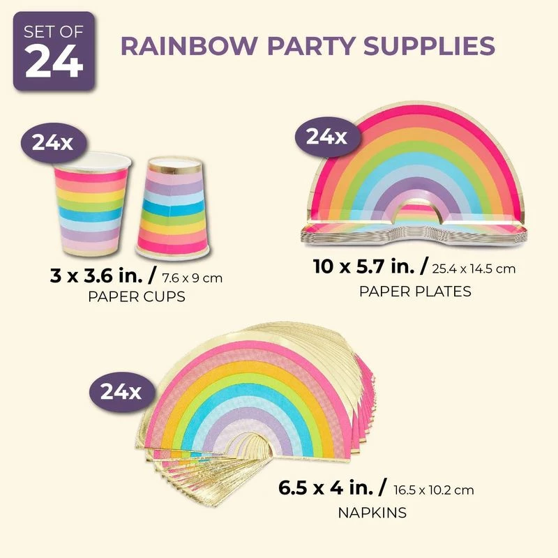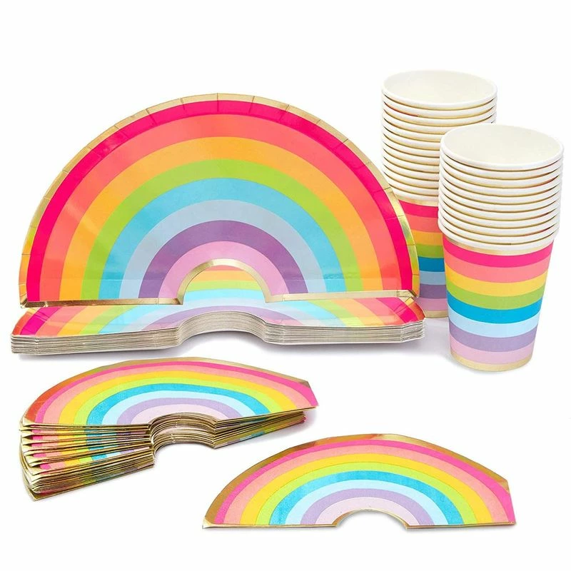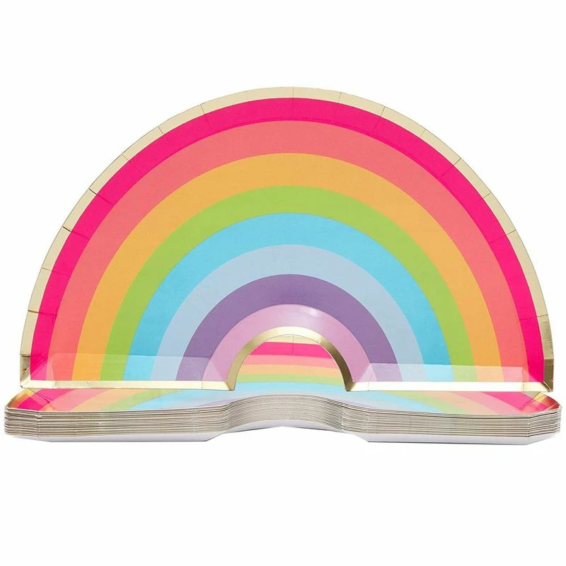 - RAINBOW SHAPED PARTY SUPPLIES: Paper plates and napkins are die-cut into arches are feature a beautiful rainbow print with gold foil accents; create a perfectly coordinated theme for children’s birthdays, baby showers, gender reveals, family events, pride celebrations, and classroom parties