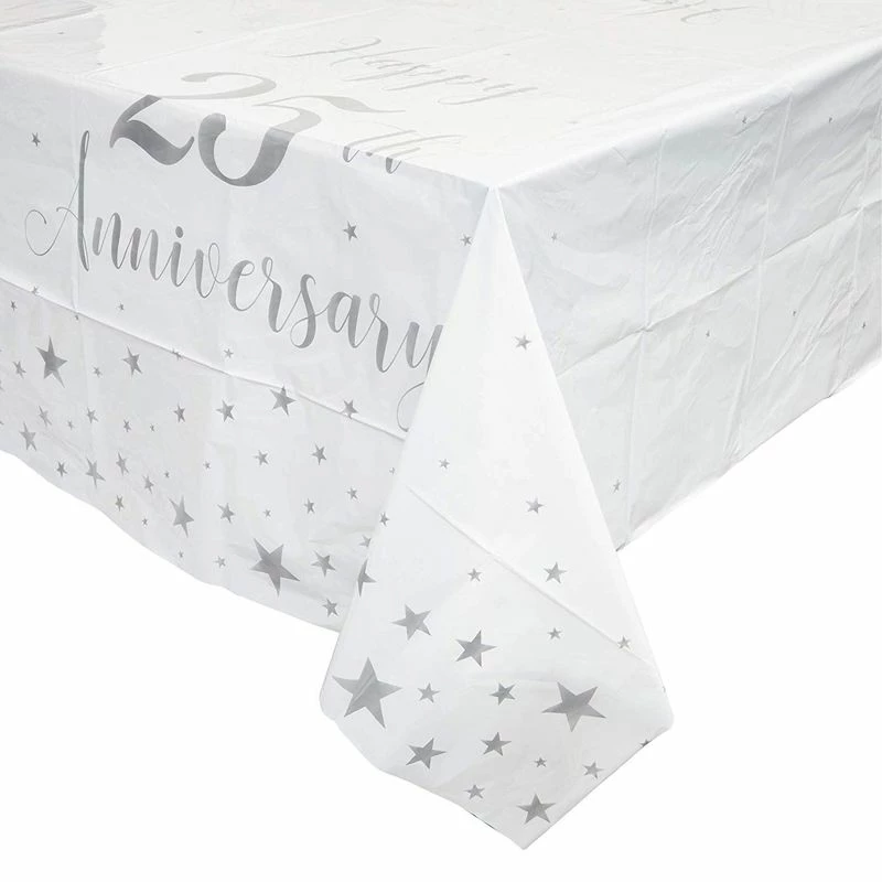 3 Pack 25th Anniversary Plastic Table Covers 54 x 108 Inches