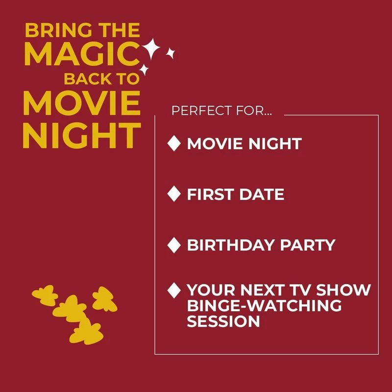 - BRING THE MAGIC BACK TO MOVIE NIGHT: Just the thing for your upcoming movie night, first date, birthday party or the next time you and your buddies are going to binge-watch the next TV-series