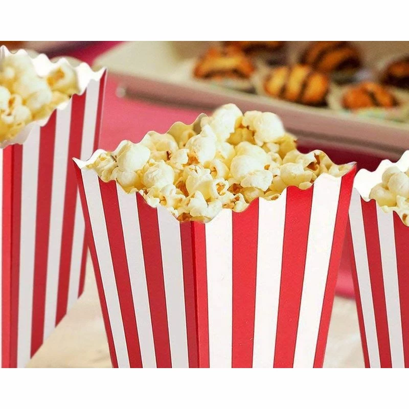 - PACK OF 100 FOOD-GRADE 20oz POPCORN BOXES: Made of durable 230gsm paper, these 20oz popcorn containers feature scalloped edges in the classic movie theater design