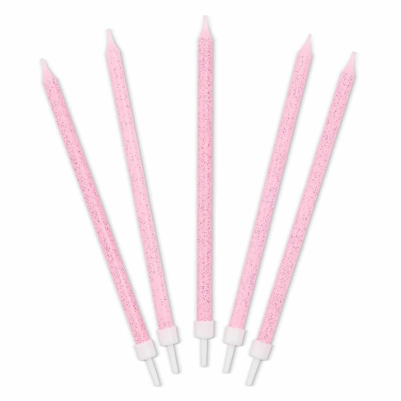 Celebrate your sixteenth birthday with light pink birthday candles! This pack features a pink glitter design with both “sixteen” letter candles and long birthday candles. The included white candle holders help stop wax from getting onto your treats and they also provide more stability. Each of the colorful birthday candles measures 3.6 inches and the tall birthday candles measure 5 inches. Use these on a birthday cake, cupcakes, brownies, and other baked goods! You’ll receive 7 pink letter candles and 24 in total.