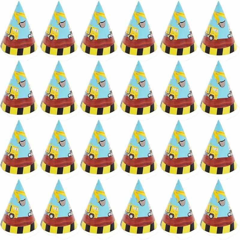 - WHAT’S INCLUDED: Includes a 24 construction birthday party hats that is pre-strung with elastic string