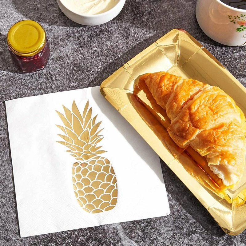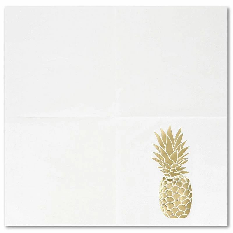 50 Pack Decorative Dinner Napkins Disposable Paper Party Napkins with Gold Foil Pineapple 6 x 6 Inches Folded Gold and White