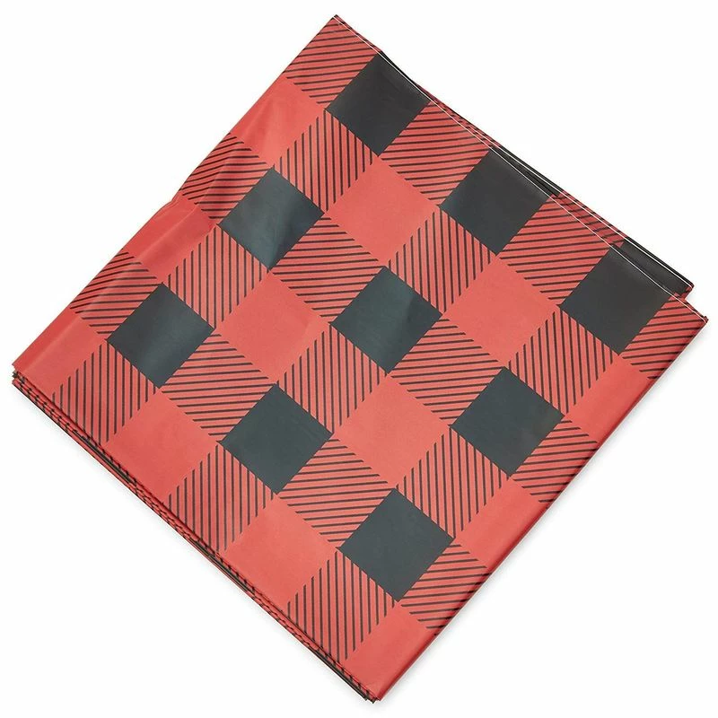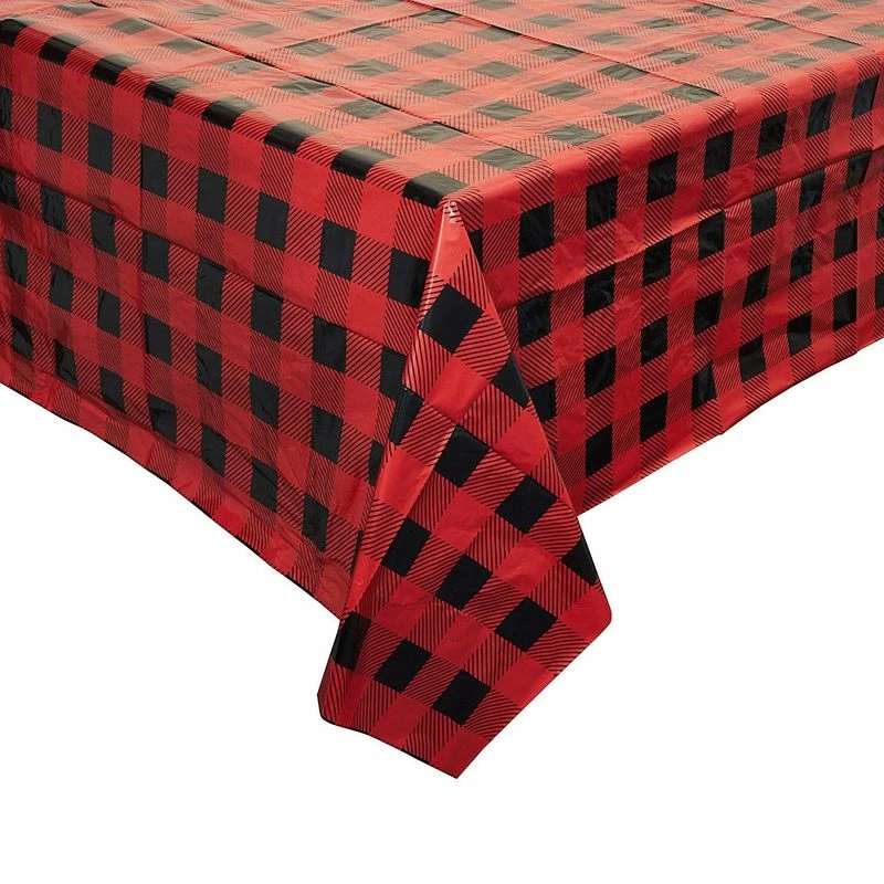 - Buffalo Plaid Party Supplies: Includes 3 plastic table covers with a red and black plaid design; ideal for your Lumberjack party decorations