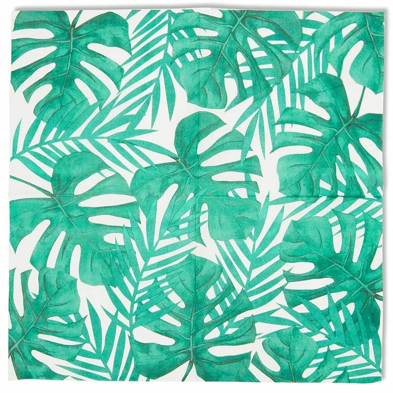 - Tropical Party Supplies: Add this set of 150 napkins to your tropical party supplies, the palm leaf print will help create a cohesive theme throughout your event