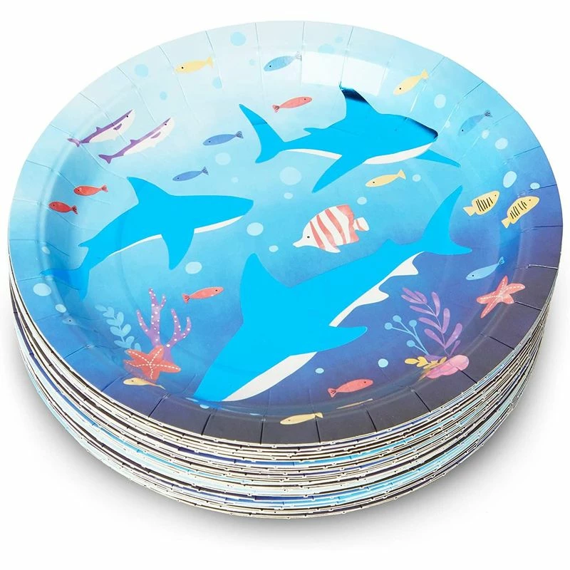 - SHARK PARTY DECORATIONS: The hexagon paper plates feature the ocean and sharks; ideal for creating a celebratory atmosphere and perfectly coordinated theme for your shark birthday party