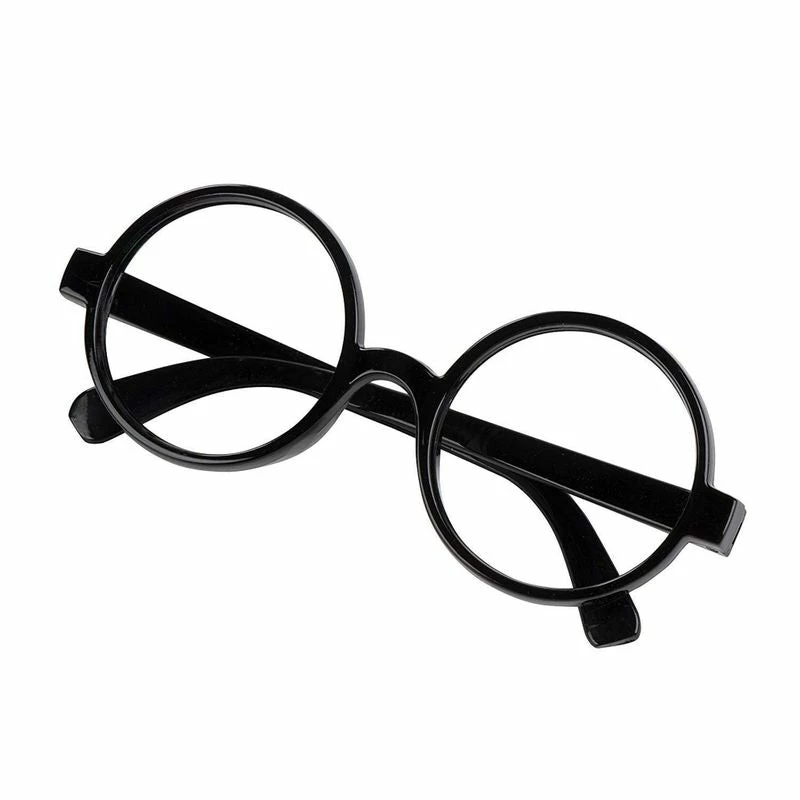 Wizard Glasses and School Ties 4 Piece Black Round Glasses with Red and Yellow Striped Ties, Cosplay Costume Accessories for Halloween, Dress-Up Birthday Parties
