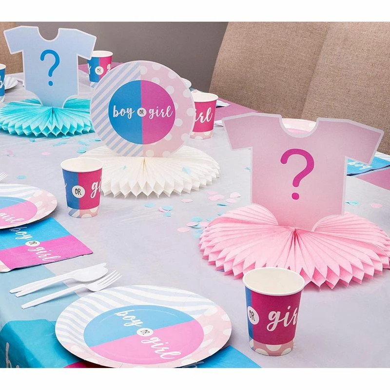- DRESS-UP YOUR PARTY TABLES: If hassle-free decorating is what you’re looking for, this is the gender reveal kit for you. Simply put it on your cake table, buffet table, dining table, or game area to keep everyone guessing your baby’s gender.