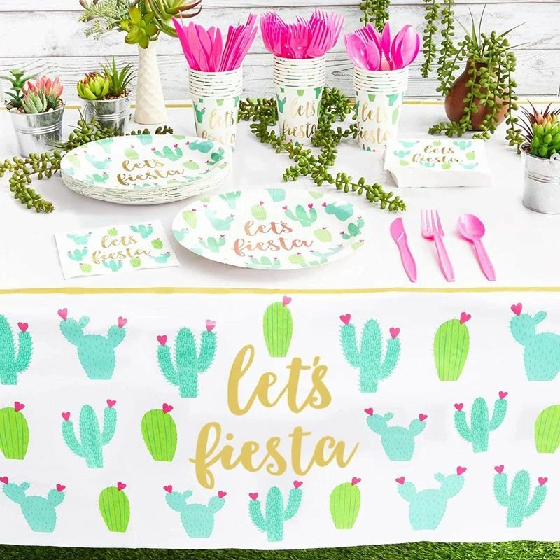 No need to worry about kids spilling drinks or making a mess while doing arts and crafts. Simply toss out the Cinco de Mayo table cloth after use along with the disposable dinnerware set.