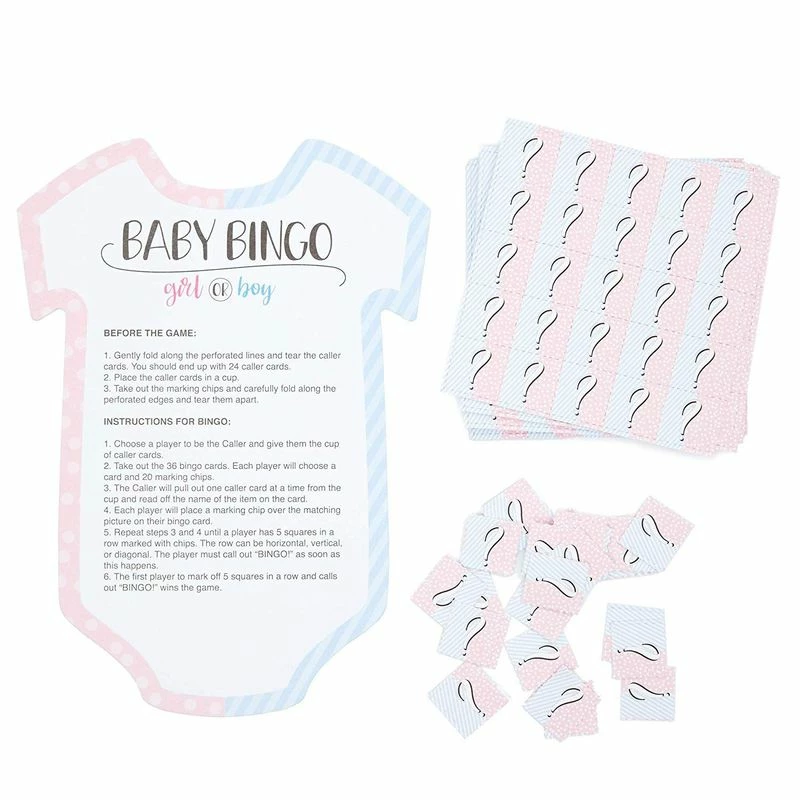 Diecut Onesie Baby Shower Gender Reveal Bingo Game Cards – 36 Set